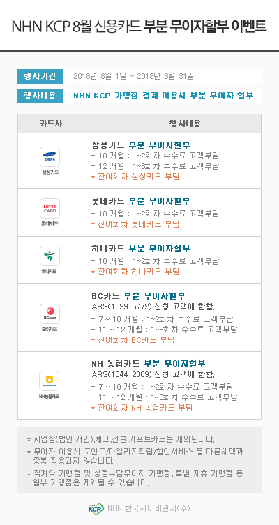 2. 8월 신용카드 부분 무이자 할부 이벤트